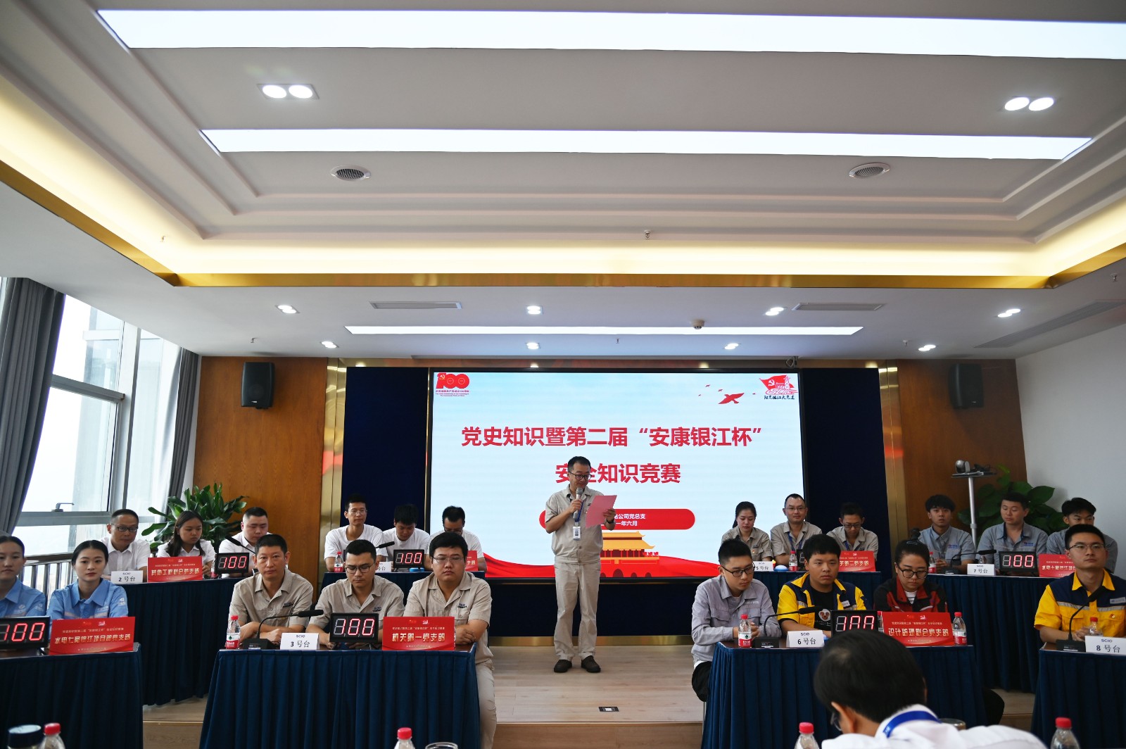 6月30日上午,在中國共產黨成立100周年華誕前夕,也是第20個安全生產月活動圓滿收官的日子里,攀水電公司黨總支在公司2620會議室開展黨史知識暨第二屆“安康銀江杯”安全知識競賽活動,來自“陽光銀江大黨建”六個聯建支部和兩個機關支部全部組隊參賽,公司及各參建單位領導、全體黨員職工、聯建支部代表共60余人參加活動。