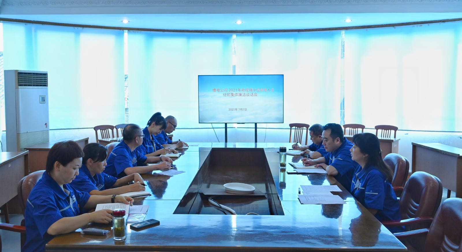 7月7日,槽漁灘公司召開新提拔中層管理人員任前集體廉潔談話會。公司黨委書記、董事長楊濤、公司總經理何光富、公司紀委書記謝愛東對2021年競聘上崗的5位部門正、副職管理人員進行了任前廉潔談話。