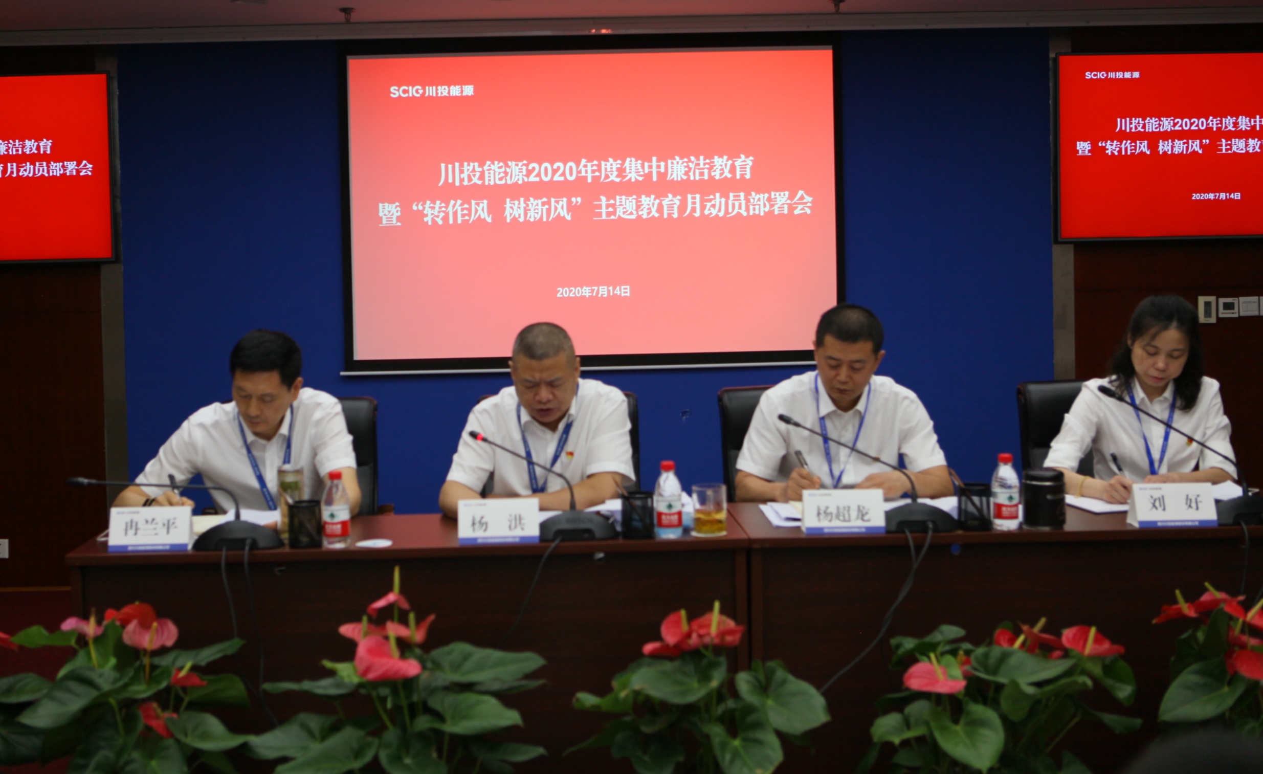 7月14日,川投能源黨委組織召開了2020年度集中廉潔教育暨“轉作風、樹新風”主題教育月動員部署會。公司黨委書記、副董事長、總經理楊洪出席會議并講話,公司黨委副書記、工會主席楊超龍主持會議。