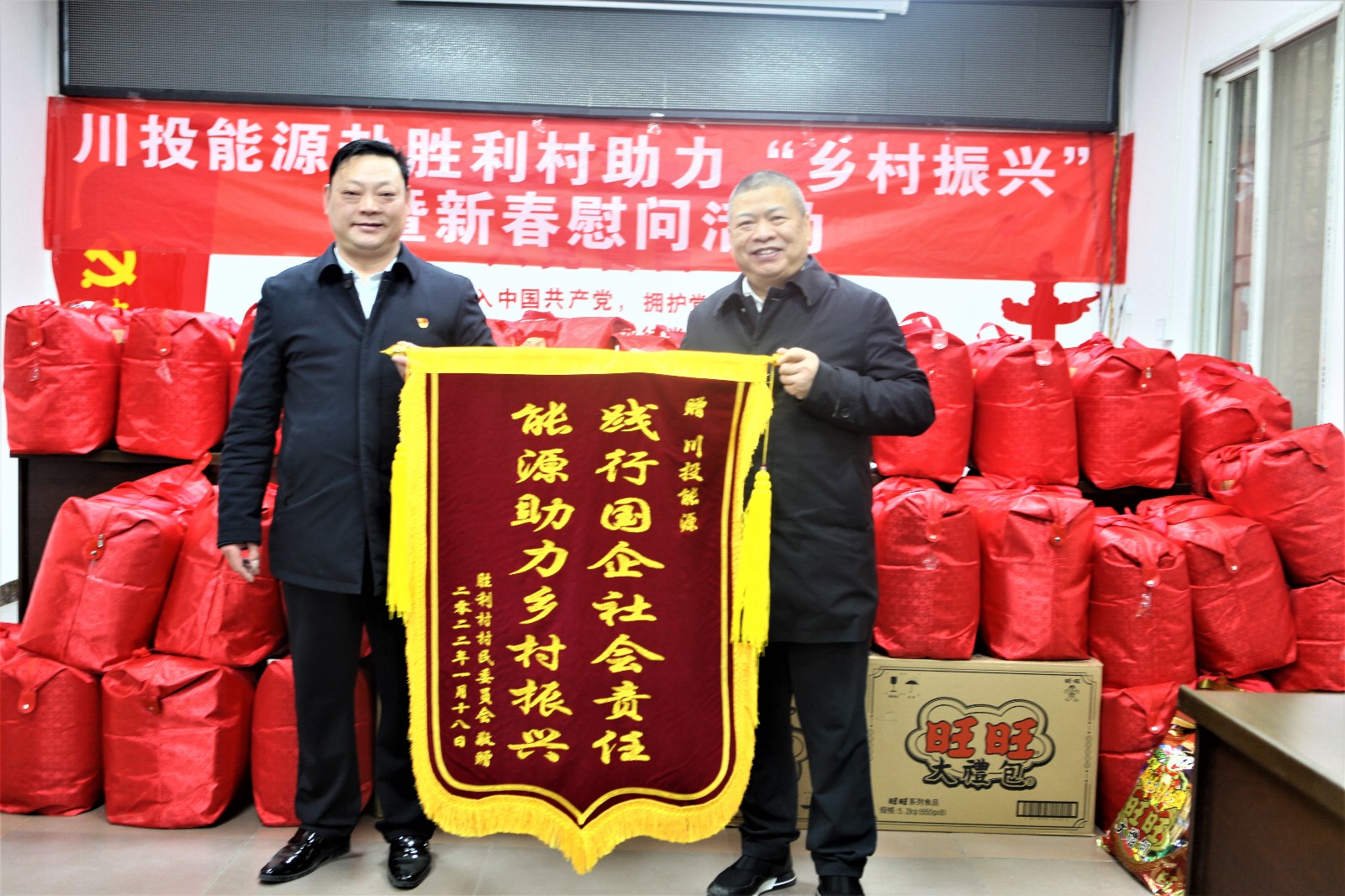 據悉,川投能源自2018年以來累計向定點扶貧的勝利村捐款捐物超200萬元,打出產業、教育、旅游等扶貧“組合拳”,助推當地順利退出省定貧困行列,圓滿完成脫貧任務,并嚴控返貧風險,四川省驗收至今未出現一例返貧現象。慰問座談會上,勝利村支部書記熱情向公司贈送了寫有“踐行國企社會責任 能源助力鄉村振興”的錦旗,金口河區委常委、組織部部長師玉容對川投能源的愛心幫扶表示衷心感謝,并號召幫扶對象要心存感恩,立足自身,勤勞致富,為鄉村振興貢獻力量,以此來回報黨的恩情和川投能源的關心幫助!