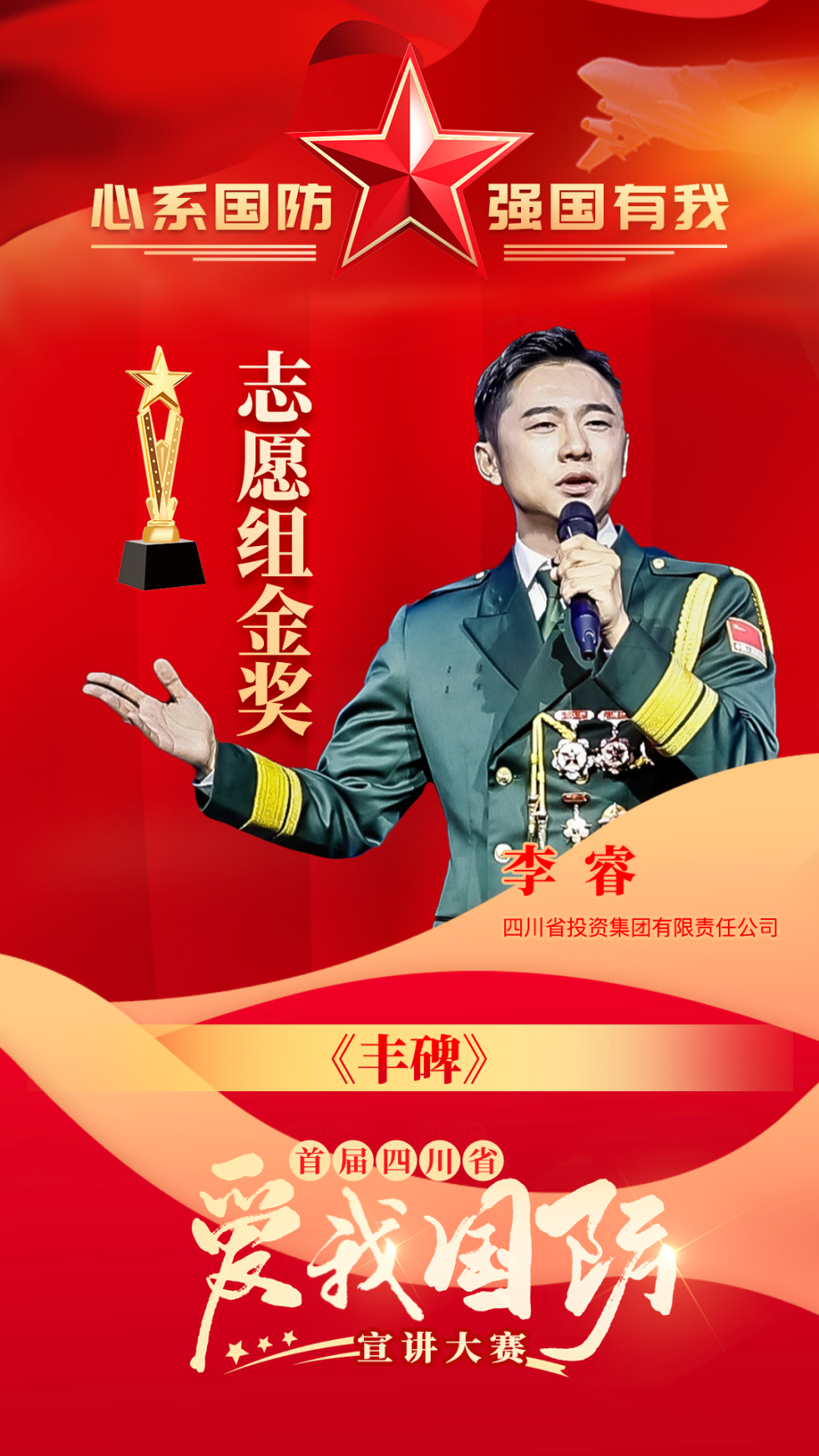 講好新時代國防故事、傳播新時代國防聲音。7月8日,首屆四川省“愛我國防”宣講大賽成果展演在四川廣播電視臺精彩上演,來自全省21個市州和省直有關部門的170名選手代表參與展演,展示大賽成果。現場揭曉了本屆大賽的金獎和銀獎獲得者,其中,川投能源選手李睿榮獲金獎!